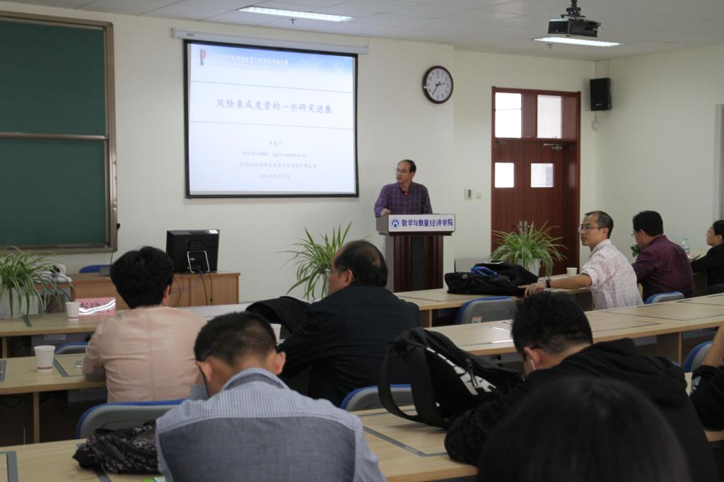 院长安起光教授介绍了李建平教授的情况, 并对李建平教授的到来表示热烈欢迎。李建平教授围绕着风险相关性与集成问题、风险矩阵的集成问题、风险集成的财务报表方法等方面进行了详细的介绍,张慧、陈景年,宋浩等部分老师围绕风险相关性与集成等问题与李建平教授进行了很好的沟通。最后,李建平教授耐心细致地回答了同学们提出的问题。