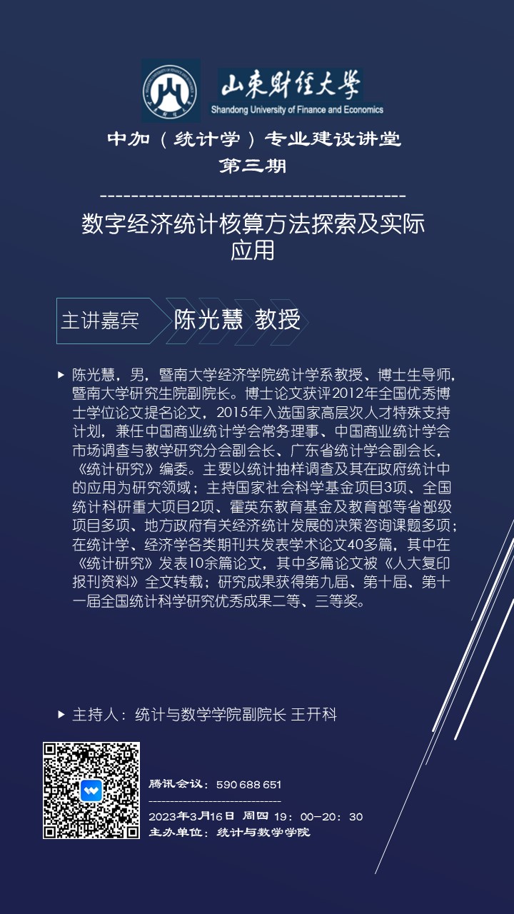 中加(统计学)专业建设讲堂第三期预告------数字经济统计核算方法探索及实际应用