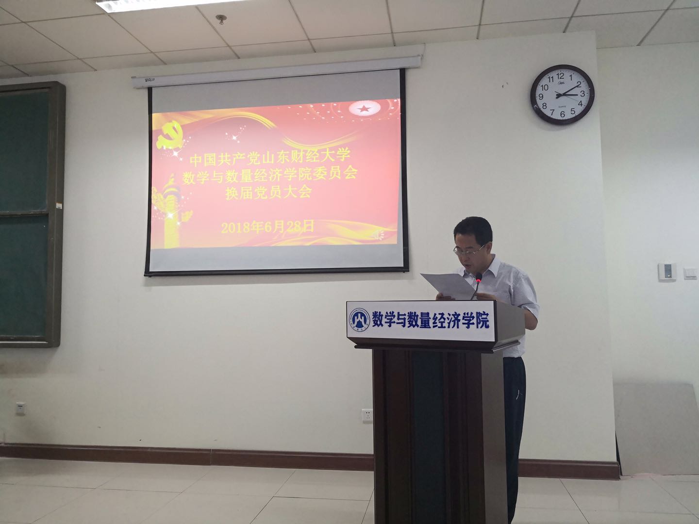 6月28日下午2:30,中共山东财经大学数学与数量经济学院委员会换届党员大会在实验楼507室举行。会议在庄严的《国际歌》中拉开帷幕,本次会议第一阶段由鱼乐达人网页版 院长、党委副书记安起光同志主持。