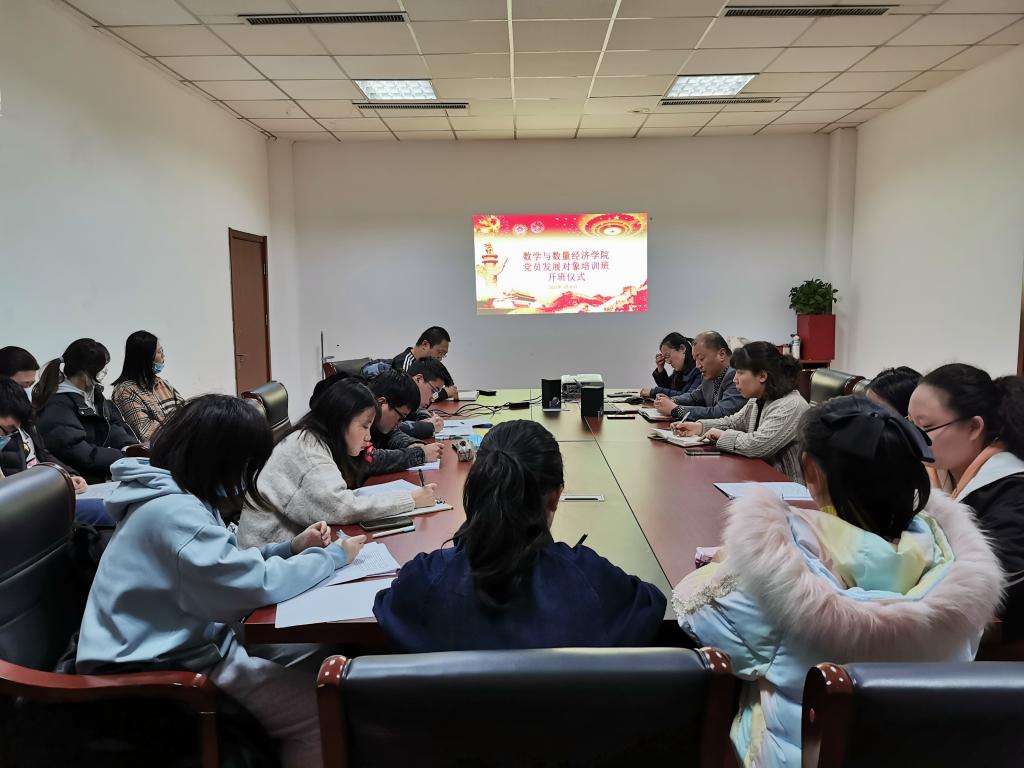 按照学校党委组织部和学院党委工作部署,为了端正党员发展对象的入党动机,坚定理想信念,提高政治素质,把好党员发展入口关,2021年3月8日下午,数学与数量经济学院在舜耕校区4号教学楼306举办了第20期党员发展对象培训班。党委书记李振华出席仪式并做了讲话,学院党委副书记陶晓华、学生第二党支部书记、辅导员燕文静及26名发展对象参加,开班仪式由学院专职组织员张亚萌主持,