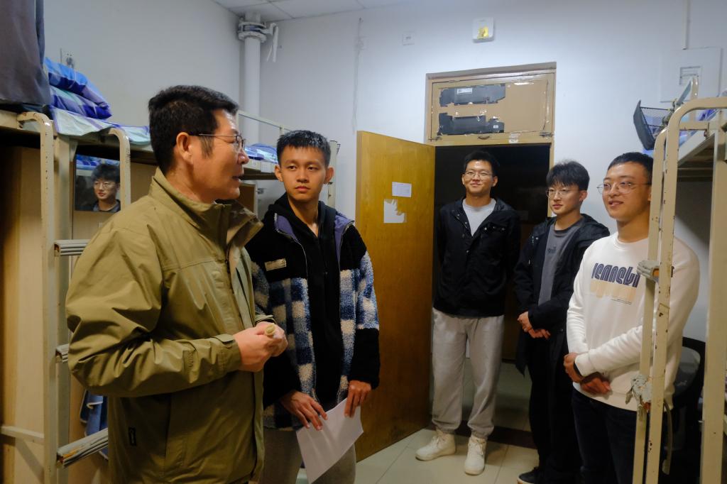 在走访学生宿舍过程中,李玉成与同学们亲切交流,详细了解了新生的学习生活状态和适应情况,耐心倾听同学们的困扰并设身处地进行心理疏导。他勉励同学们要及时调整状态,尽快转变角色,适应大学学习生活节奏,努力提高自身专业水平和综合素养,并叮嘱同学们要严格遵守校规校纪,提高安全意识,注意防火、防盗、防诈骗,确保宿舍安全稳定。