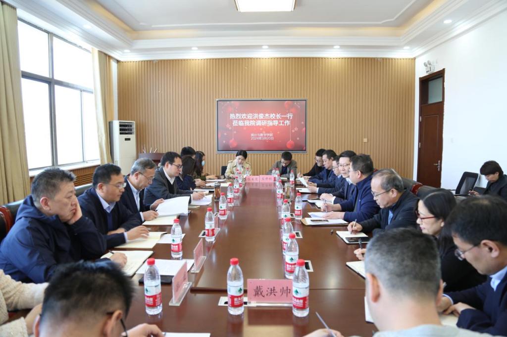 3月20日下午,校长洪俊杰一行莅临鱼乐达人网页版 调研指导工作。学院党委书记李玉成主持座谈会,学院全体领导班子成员和部分教授代表、青年教师代表参加会议。