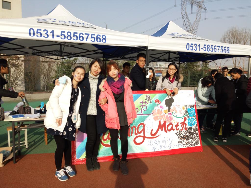 2016年11月26日,由山东财经大学校团委、学生处、数学与数量经济学院主办,山东财经大学数学与数量经济学院团委、山东财经大学数学与数量经济学院学生会承办,山东财经大学数学文化协会协办的山东财经大学第二届数学文化节举办了一系列主题活动。为了进一步传承和弘扬数学文化,增强全校师生对数学文化的了解,提升广大青年学生的数学素养,在全校掀起爱数学、学数学、用数学的热潮,全面推进校园文化活动的品牌建设。山东财经大学数学与数量经济学院举办了数学文化节系列活动之“Running math”。活动旨在体现当代大学生的良好精神风貌以及提高同学们对数学的热爱之情。本次活动的口号是:传承数学文化,启迪数学思维,共享数学之美。