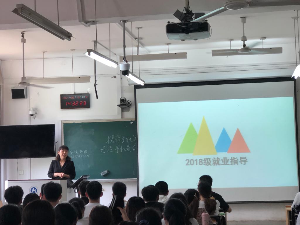 2021年5月13日以及20日,鱼乐达人网页版 分别于舜耕校区2309教室和圣井校区1208教室举办就业指导专题讲座,讲座由鱼乐达人网页版 就业办主任燕文静老师主讲,对2017级的考研和就业情况进行介绍并对同学们进行专题指导和解疑答惑。