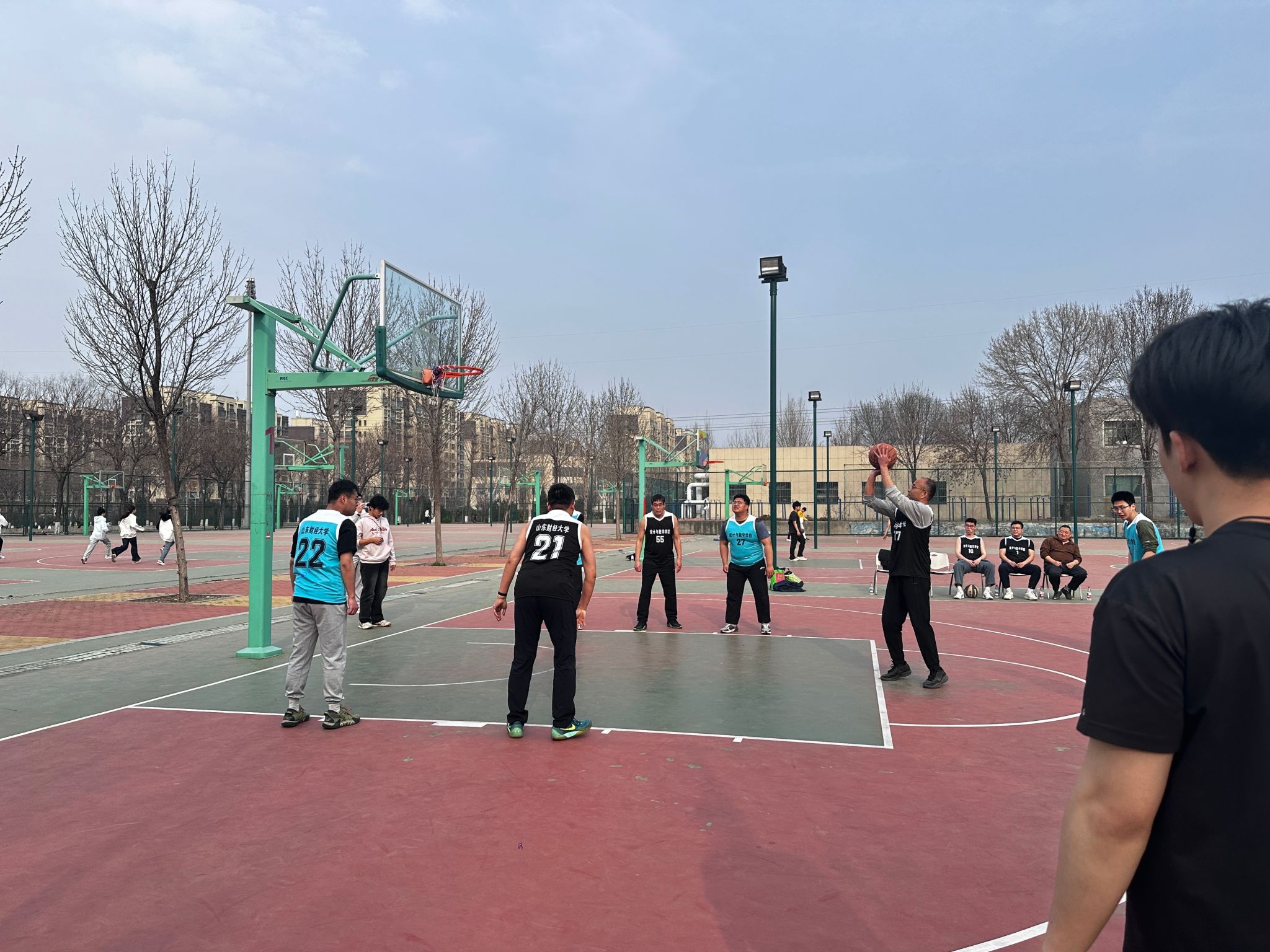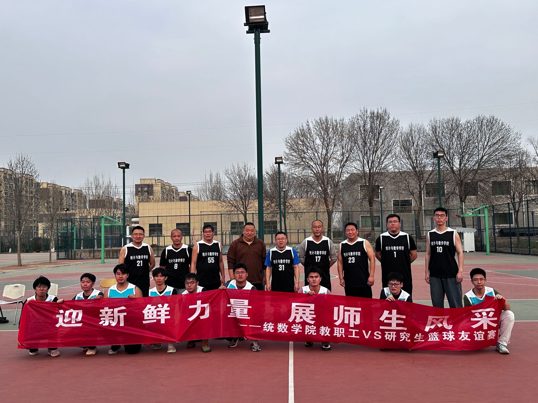 随着裁判一声清脆哨响,比赛火热开启。赛场上,教师队依托丰富的比赛经验与默契的团队配合稳扎稳打,精准传球、稳健防守、巧妙上篮,充分展现出三尺讲台之外的别样风采;研究生队则活力四射、敢打敢拼,凭借敏捷的身手、迅捷的攻防转换和精准的跳投,彰显出青年学子的蓬勃朝气与顽强韧劲。