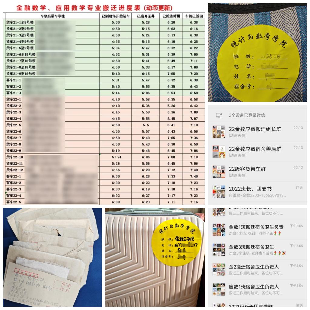 学院在搬迁过程中注重科学规划和有序推进。根据各个班级的实际情况,制定了详细的搬迁方案和流程。为每个班级分配了对应的客、货车和押车负责人,确保货清人齐。根据分工,建立不同搬迁工作微信群便于沟通协调,搬迁前夕,辅导员到每个宿舍了解行李打包和卫生整理情况,做到进度不滞后、卫生有善后。为及时掌握搬迁进度,便于接车,同时兼顾下一批次搬迁学院了解车辆到达时间,创建在线文档动态更新车辆发出、到达、返回时间。在搬迁过程中,学院按照既定的方案和流程进行操作,确保了搬迁工作的有序进行。