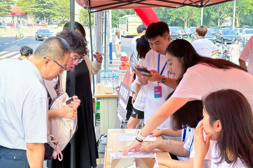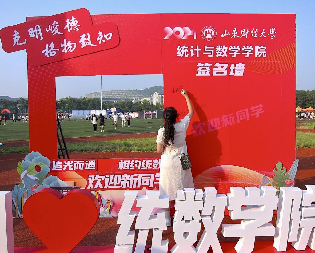热情如火,迎新现场尽显温馨。统数学院全体师生做足了准备,热情洋溢、富有学院特色的迎新横幅,独具匠心的打卡展板和签名墙……处处洋溢着浓厚的迎新氛围,每一处细节都透露着学院对新同学到来的热切期待和深切关怀。新生们纷纷驻足,留下自己的青春印记,定格下这难忘的瞬间。