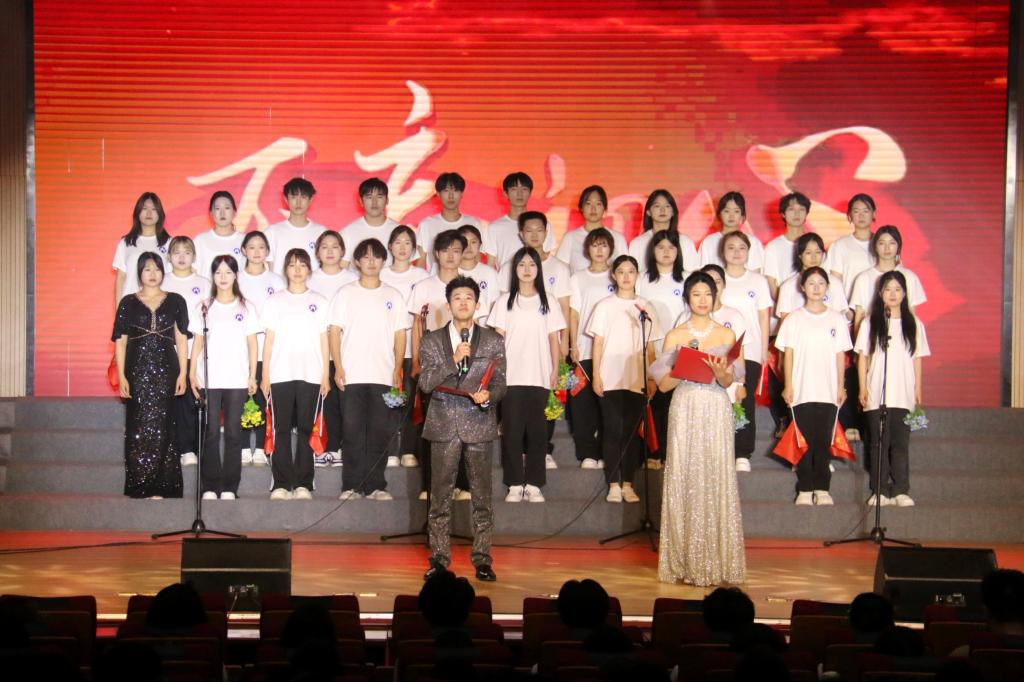 活动现场气氛热烈,各学院代表队依次登台演唱。鱼乐达人网页版 学子精神抖擞地登上舞台。当《不忘初心》的旋律响起,同学们满怀热忱,用歌声深情诠释歌曲中蕴含的信仰与担当。“不忘初心,继续前进”的嘹亮歌声,既是对革命先辈的崇高礼赞,也是新时代青年对青春使命的庄严承诺。慷慨激昂的朗诵中,字字句句饱含着鱼乐达人网页版 学子的真挚情感;铿锵有力的歌声里,抑扬顿挫凝结着坚定不移的奋斗信念。同学们极富感染力的演唱,将歌曲中温暖而磅礴的力量传递给现场每一位观众,赢得阵阵热烈掌声,将现场气氛推向高潮。