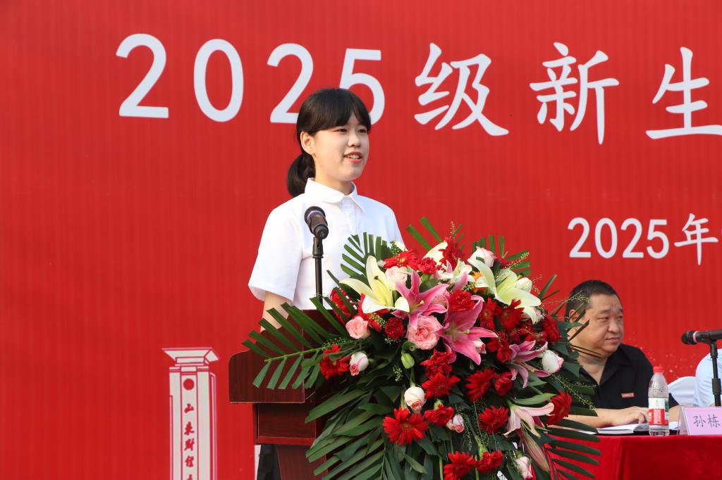 新生代表2025级统计学1班柴溪蔓在发言中表达了对大学生活的热切期待和郑重承诺,感谢师长与学长们的关怀指引,并表示将坚定理想、勤学不辍,努力成长为有理想、有本领、有担当的时代新人。