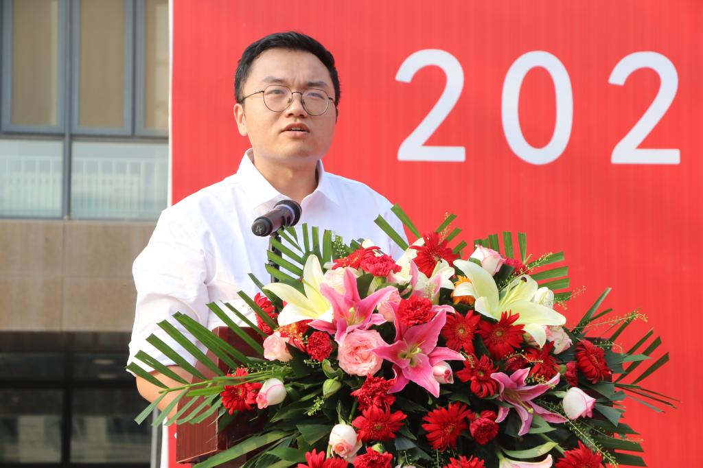教师代表、预聘制教授张国栋在发言中寄语新生,强调大学阶段应主动构建系统化知识结构,培养批判思维与团队协作能力,勇于面对不确定性,在扎实学业的基础上拓宽生命体验,成长为善思笃行、温暖有力的新时代青年。