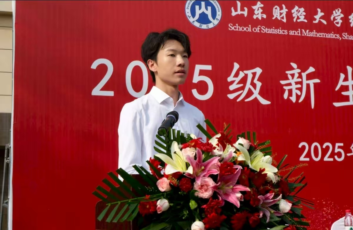 在校生代表2022级金融数学创新班李禾分享了三年来的成长感悟,鼓励新生从认真听课、积极参与实践等细微之处做起,逐步明确方向;勇于迎接挑战,在竞赛、协作与突破中锤炼能力;珍惜学院互助共进的集体氛围,主动融入、共同成长。