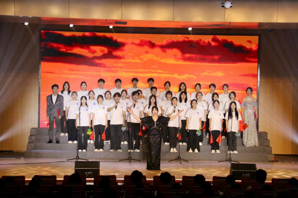 活动现场气氛热烈,各学院代表队依次登台演唱。鱼乐达人网页版 学子精神抖擞地登上舞台。当《不忘初心》的旋律响起,同学们满怀热忱,用歌声深情诠释歌曲中蕴含的信仰与担当。“不忘初心,继续前进”的嘹亮歌声,既是对革命先辈的崇高礼赞,也是新时代青年对青春使命的庄严承诺。慷慨激昂的朗诵中,字字句句饱含着鱼乐达人网页版 学子的真挚情感;铿锵有力的歌声里,抑扬顿挫凝结着坚定不移的奋斗信念。同学们极富感染力的演唱,将歌曲中温暖而磅礴的力量传递给现场每一位观众,赢得阵阵热烈掌声,将现场气氛推向高潮。