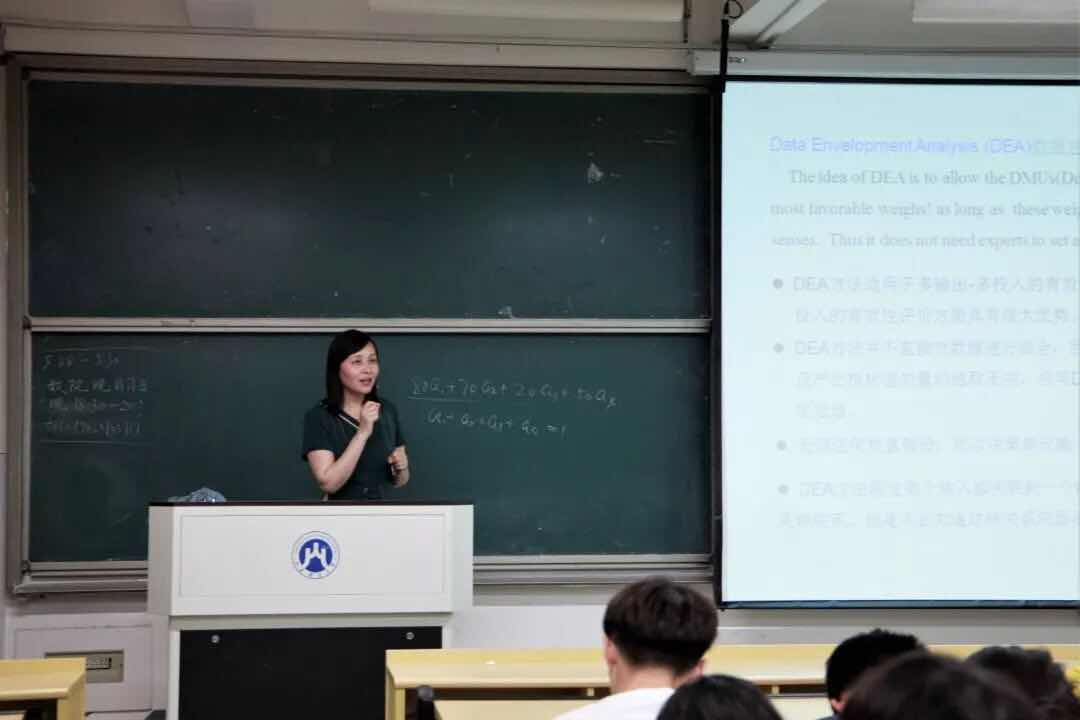 首先,沈万芳老师介绍了数据包络分析(Data Envelopment Analysis)方法的定义与重要性。沈老师以特色类大学如何处理高考考生成绩要求为例,介绍了权重在评价分析中的重要性;随后,沈老师又从教师授课质量的度量方法切入,指出要正确衡量一个复杂系统投入与产出的关系,必须要使用科学严谨的分析方法,建立适当的数学模型。