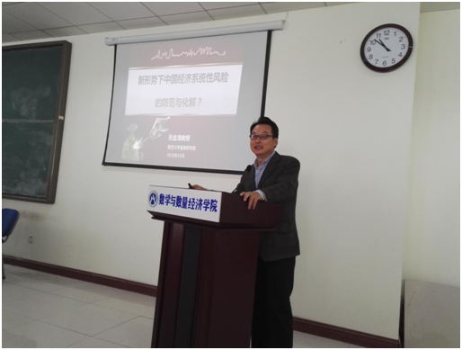 10月20日下午,复旦大学博士生导师张金清教授应邀来鱼乐达人网页版 作题为“新形势下中国经济系统性风险的防范与化解”的学术报告。金融数学、金融工程和金融风险管理团队负责人、金融数学研究所所长朱庆峰副教授及团队成员、学院部分教师以及研究生、本科生到会聆听了报告。山东女子学院经济学院院长沈传河教授、东方学院金融系副主任郭宁、分管科研副院长郝秀梅教授也参加了报告会。报告会由院长安起光教授主持。