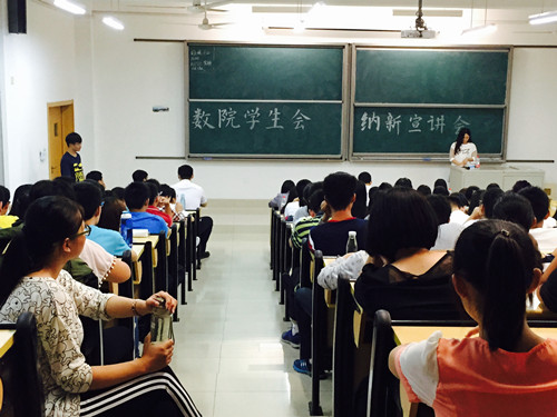 2015年9月22日,山东财经大学圣井校区数学与数量经济学院于B2111教室开展了数院学生会纳新宣讲会,大一新生代表、大二学生会代表以及大三主席团即学生会各部门部长参与会议。