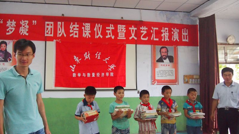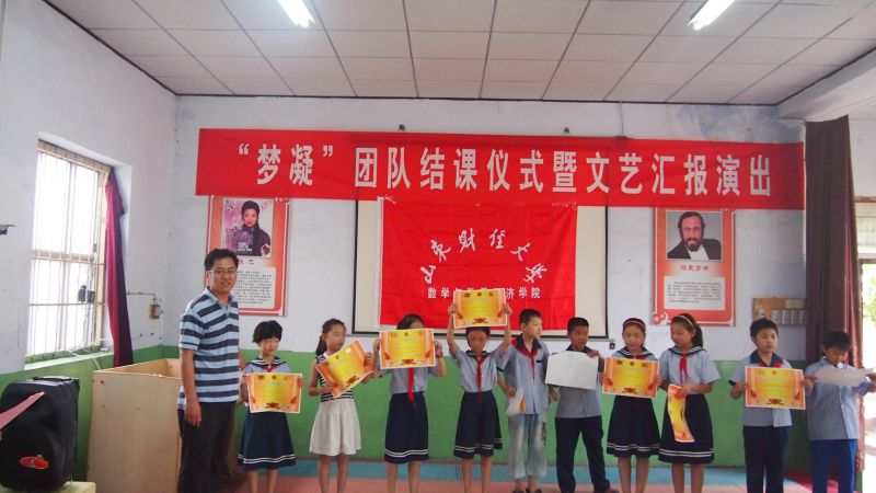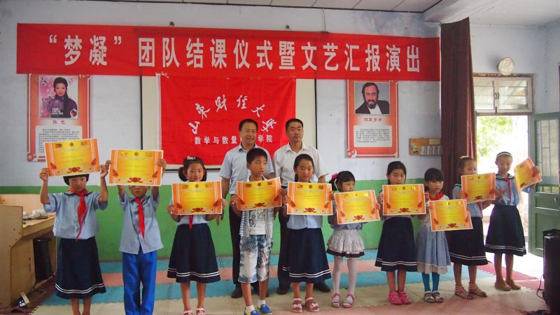 2015年7月31日,山东财经大学数学与数量经济学院“梦凝”团队在南鲁山镇中心小学举行“为孩子插上梦想的翅膀”文艺成果汇报演出暨结课仪式。