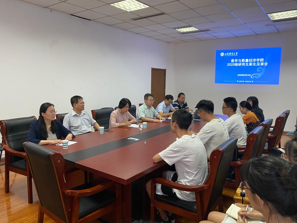 金秋送爽,丹桂飘香,又是一年迎新时。9月4日下午,数学与数量经济鱼乐达人召开 了2020级研究生新生见面会,热烈欢迎鱼乐达人网页版 22位研究生新生。学院党委书记唐磊、院长安起光、副院长刘太琳、导师代表郭洪峰教授和研究生辅导员张亚萌出席本次新生见面会,2019级老生代表和全体2020级研究生新生参加会议,党委副书记陶晓华主持会议。