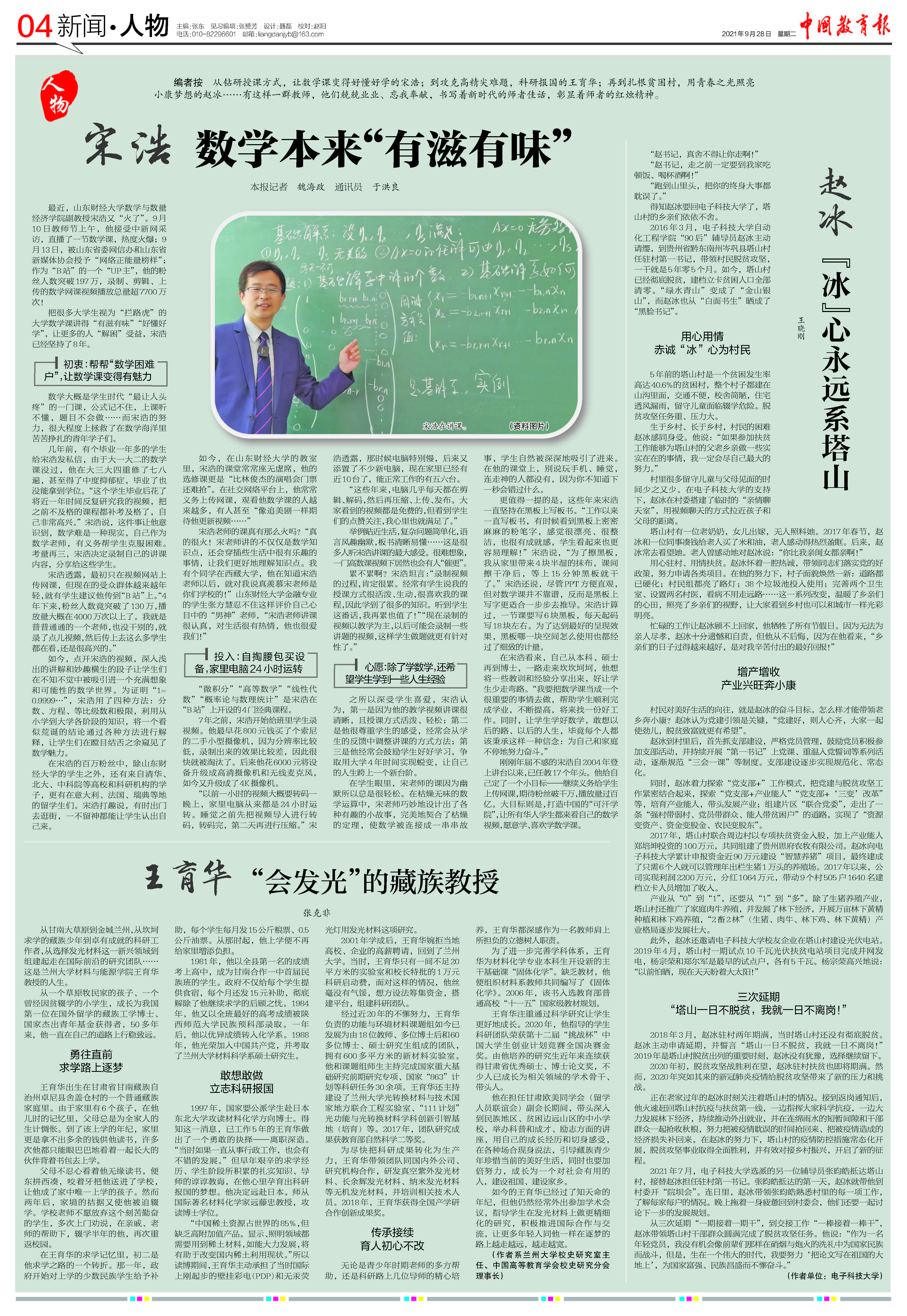累不累啊?宋浩坦言:“录制视频的过程,肯定很累。经常有学生说我的授课方式很活泼、生动,很喜欢我的课程,因此学到了很多的知识。听到学生这番话,我再累也值了!”“现在录制的视频以教学为主,以后可能会录制一些讲题的视频,这样学生做题就更有针对性了。”