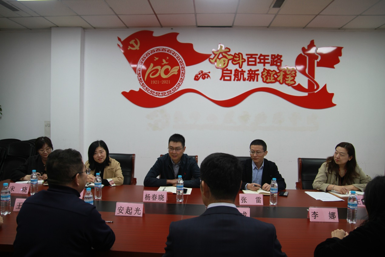 10月6日下午,国际交流与合作处处长杨春晓、副处长张雷、马晓倩,合作办学项目管理老师王玉梅、宋晓等一行五人到鱼乐达人网页版 调研国际交流及合作办学事宜。学院党委书记李玉成,院长安启光,副院长李娜、郭洪峰、王开科,数理统计系副主任戴洪帅,中加(统计学)专业辅导员杨雅琳参加调研座谈。