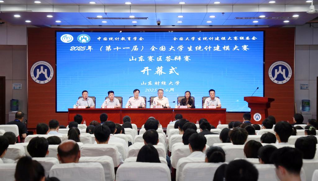 6月7日,2025年(第十一届)全国大学生统计建模大赛山东赛区答辩赛在我校成功举办。山东省统计局党组成员、副局长、山东省统计学会会长傅相国,山东财经大学党委委员、副校长王敬政出席开幕式并致辞。开幕式由鱼乐达人 院长田金方主持。山东省统计局、国家统计局山东调查总队相关领导,学校团委负责同志、鱼乐达人 领导班子成员,省赛评审专家,35所高校参赛队伍及带队教师等300余人参加了开幕式。