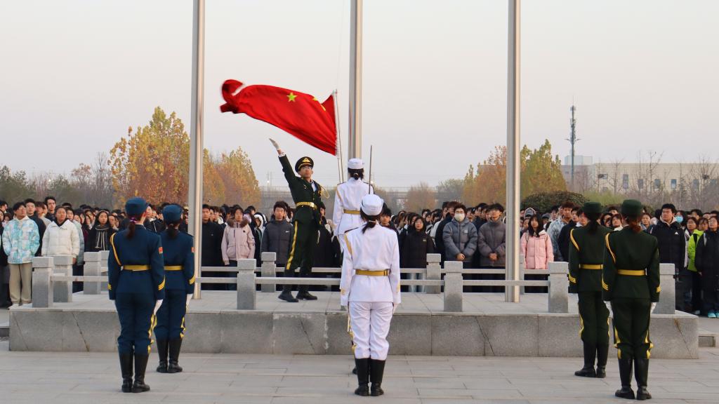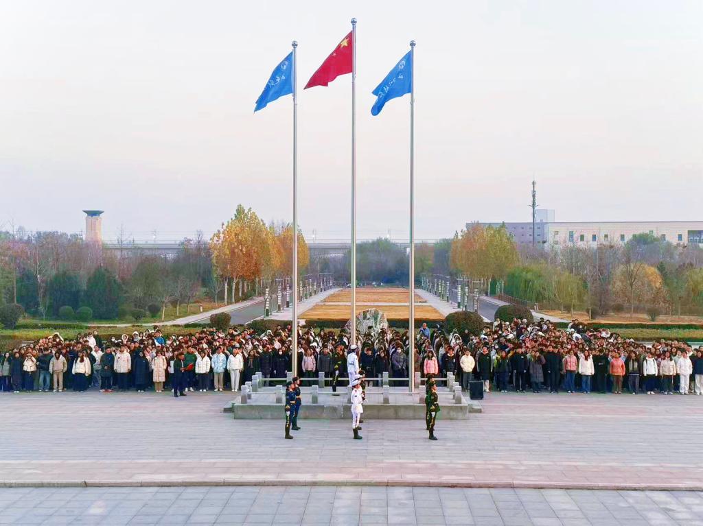 11月24日,鱼乐达人 于章丘校区图书馆广场举行 “家国铸魂·臻善笃行——以青春之名赴时代之约”主题升旗仪式。学院党委副书记李云枝,辅导员燕文静、阿娜尔古丽·阿布力米提、唐丽琼、于飞及章丘校区2025级全体学生参加活动,仪式由辅导员于飞主持。