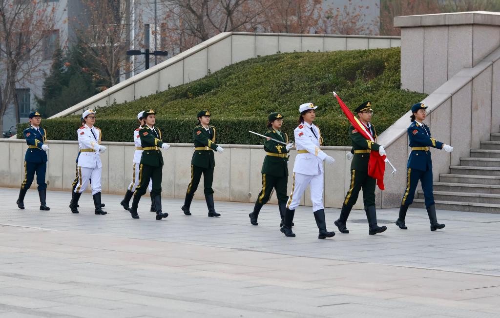早上7时,全体师生庄严肃立,国旗护卫队迈着铿锵步伐护送国旗入场。伴随着雄壮的国歌,五星红旗冉冉升起,全体师生肃立行注目礼,齐声高唱国歌,凛冽寒风中,爱国情怀在校园内激荡升腾。