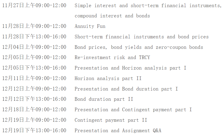 本次课程利用四个周末的时间,分9个主题讲授。