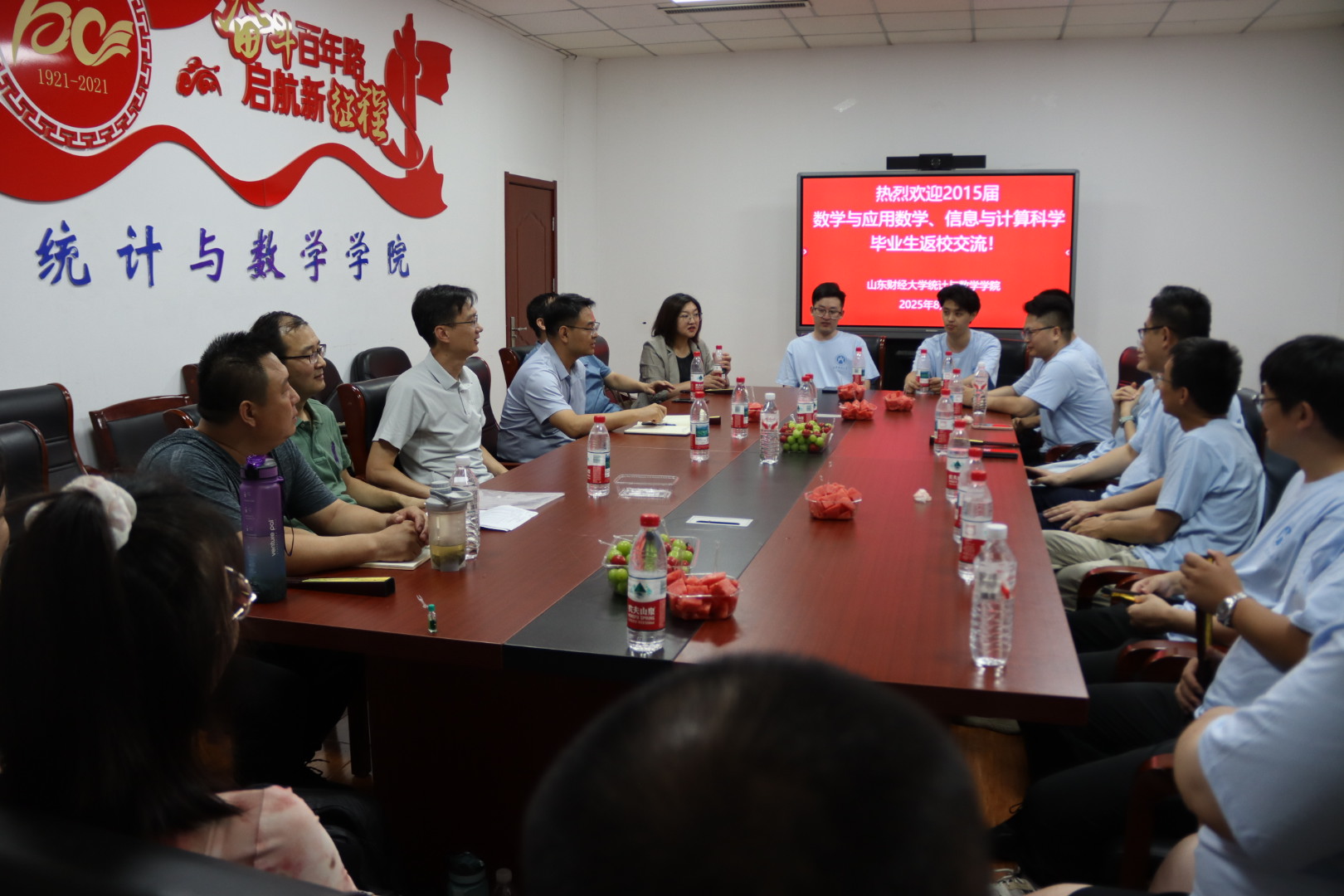 校友们重温了在山东财经大学学习的美好记忆,感谢学校的精心培养和老师们的谆谆教导,然后分别介绍了毕业后工作历程以及当前的工作情况。王昊天与老师们深情回顾了当年与同学们相处的温馨点滴,对校友们在各行各业取得的成就表示由衷欣慰,并寄语大家要永葆初心,不断学习,勇于进取,在各自岗位上发光发热。郭洪峰对校友们荣归母校表示热烈欢迎,介绍了学院近年来在学科建设、人才培养、教育教学等方面取得的进展,感谢校友们对学校和学院发展的关注和支持,并希望今后继续加强交流与沟通,传承学院精神、凝聚校友力量,为学校和学院的发展贡献积极的力量。